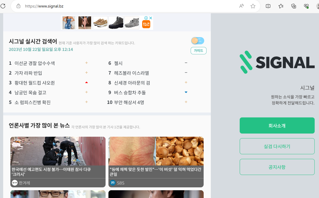 시그널 비즈 (Signal.bz) 는 한국의 인터넷 트렌드와 검색어 동향에 관심 있는 사람들에게 유용한 정보를 제공하는 사이트입니다.